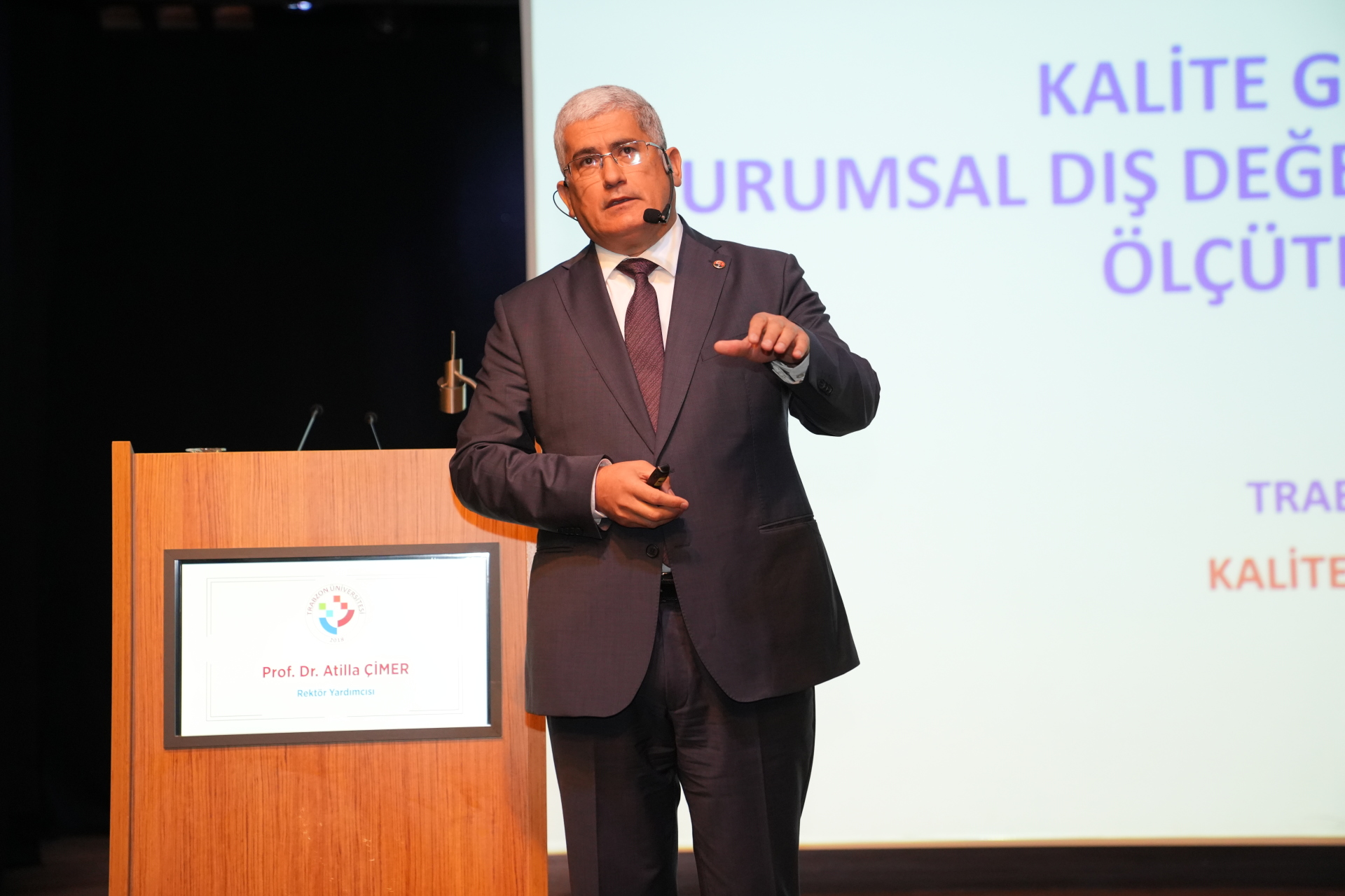 Yükseköğrenim Kalite Kurulu Başkanlığı (YÖKAK) yönergesi çerçevesinde akademik ve idari personelimiz ile yetkili birim temsilcilerimizin katıldığı programda Kalite Süreçlerinden Sorumlu Rektör Yardımcımız Prof. Dr. Atilla Çimer, 2025-2026 yükseköğretim dönemi kalite süreçlerine ilişkin değerlendirmelerde bulundu.