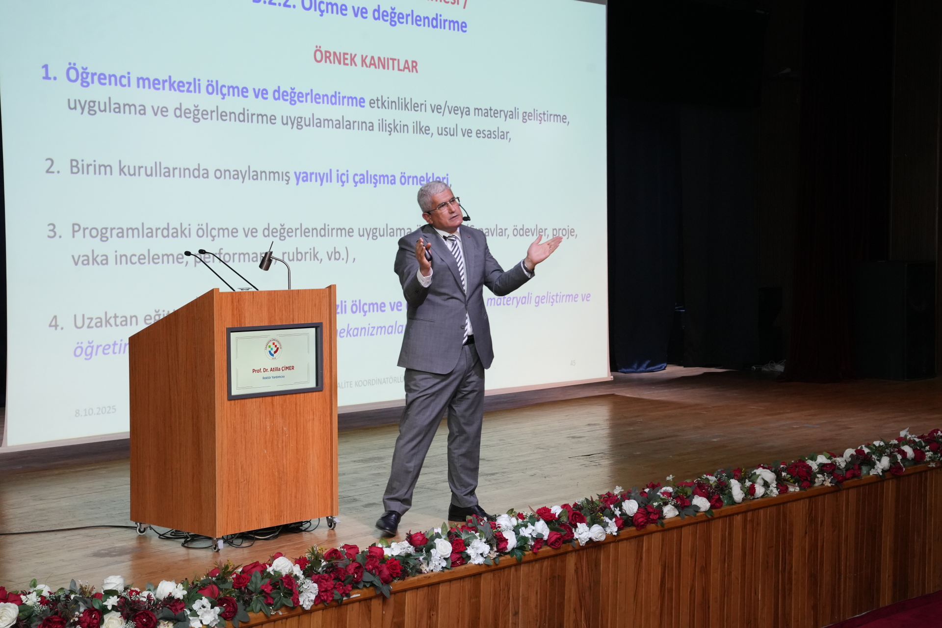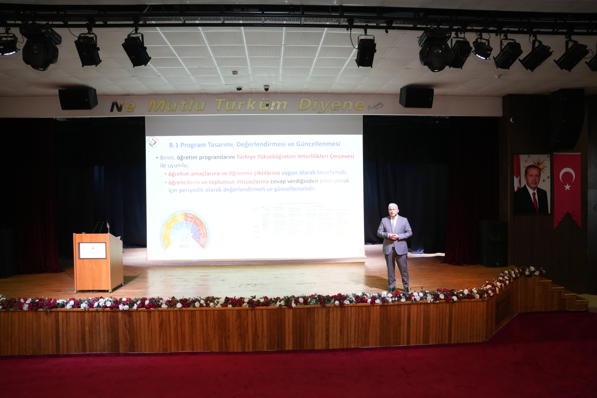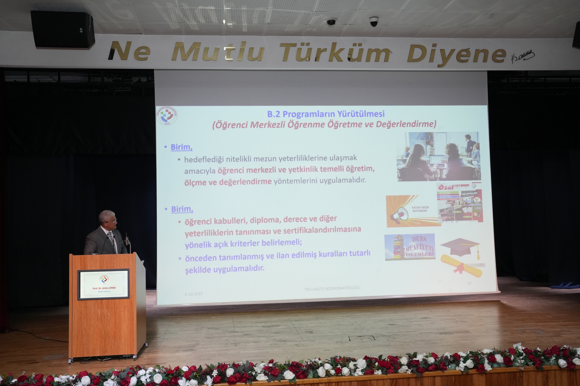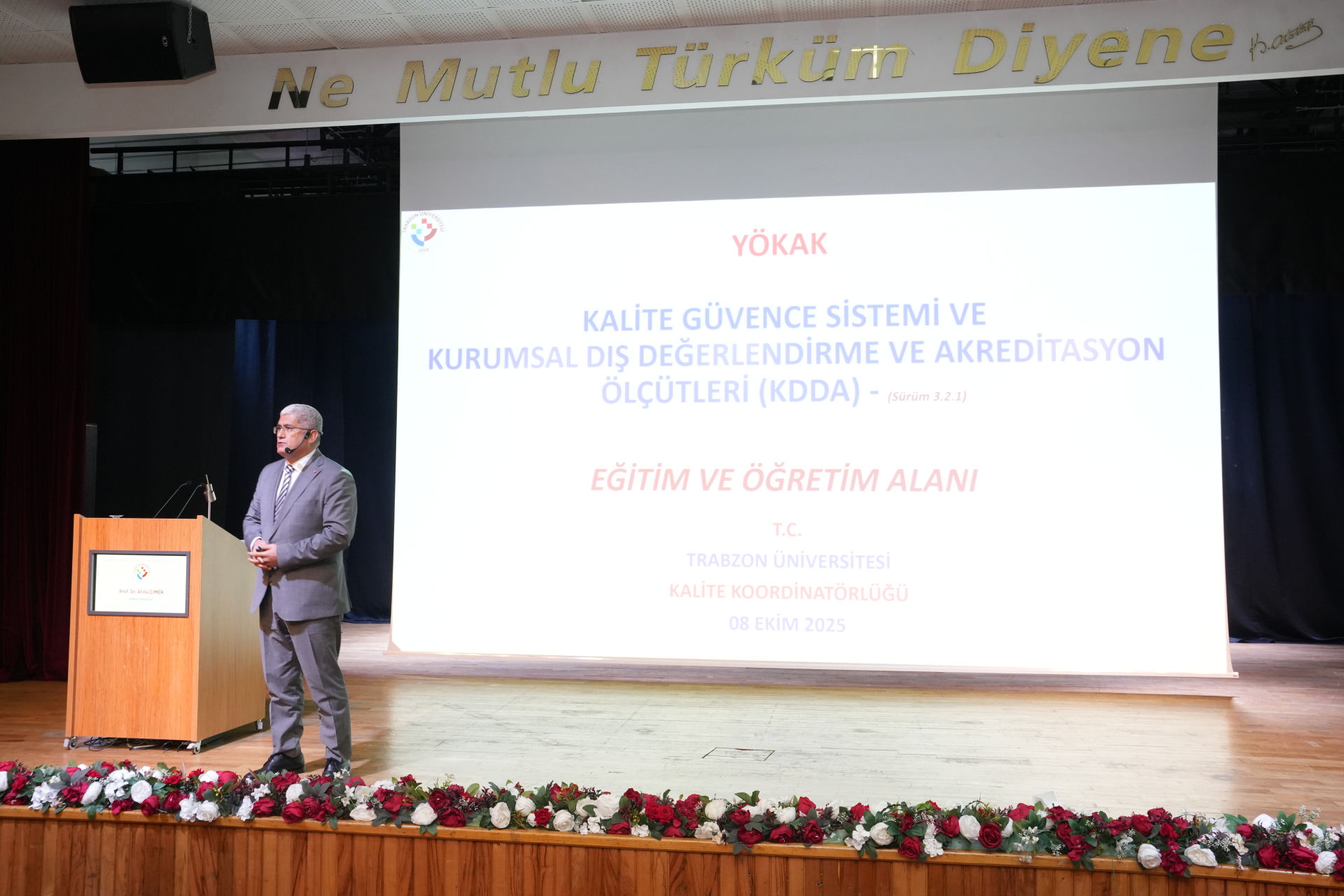 Yükseköğrenim Kalite Kurulu Başkanlığı (YÖKAK) yönergesi çerçevesinde akademik ve idari personelimiz ile yetkili birim temsilcilerimizin katıldığı programda Kalite Süreçlerinden Sorumlu Rektör Yardımcımız Prof. Dr. Atilla Çimer, KİDR ölçütlerinin eğitim-öğretim bölümüne ilişkin değerlendirmelerde bulundu.