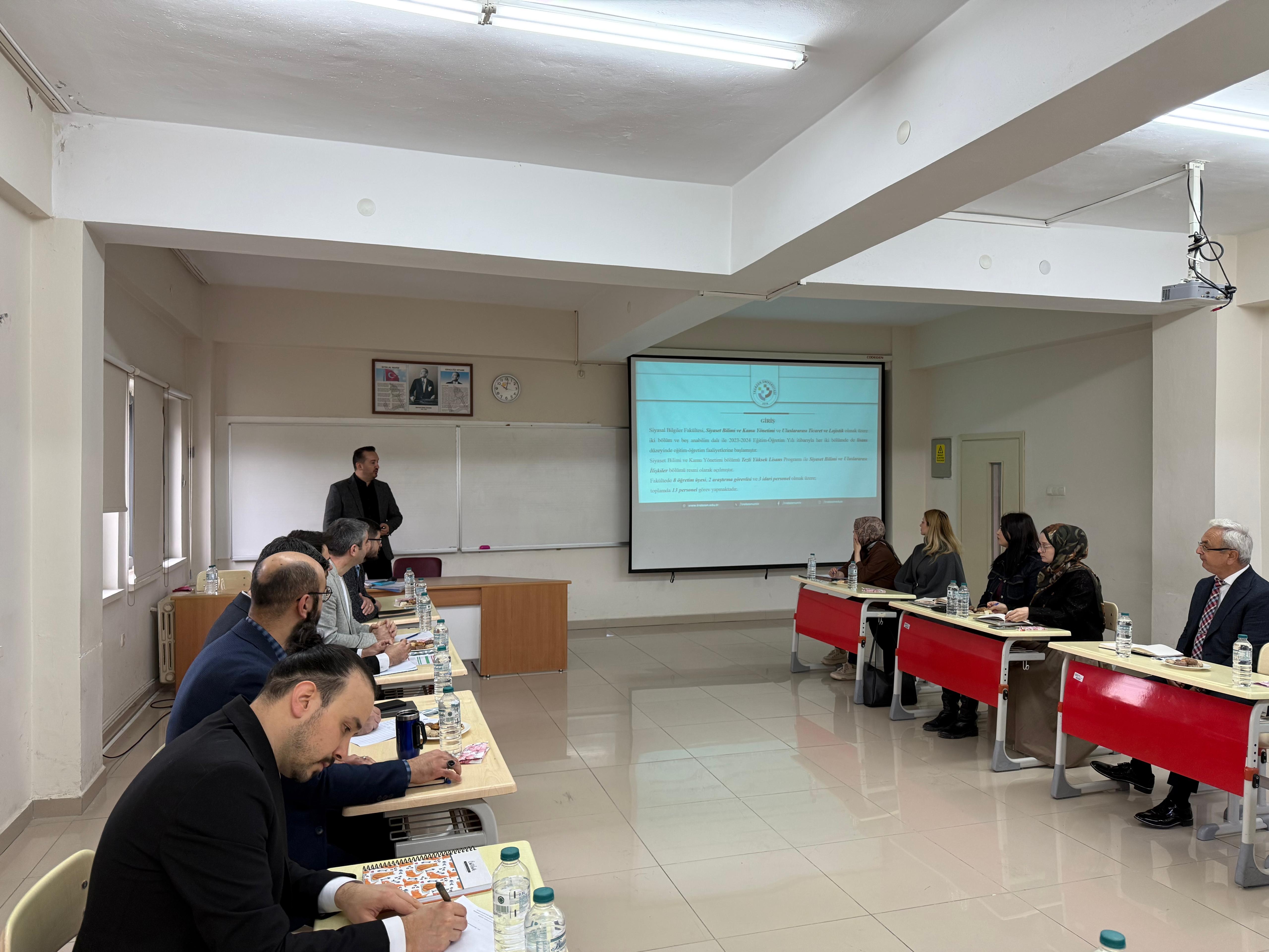 Bu kapsamda, Üniversitemizde kalite süreçlerinden sorumlu Rektör Yardımcısı Prof. Dr. Atilla ÇİMER başkanlığında, Kalite Koordinatörü Doç. Dr. Selcen SARI AYTEKİN, Kalite Koordinatörlüğü personeli Öğr. Gör. Funda SERDAR, Öğr. Gör. Tuba BAZANCİR ve Kalite Komisyonu üyesi Doç. Dr. Fatih ÇELİK Siyasal Bilgiler Fakültesi’nde Fakültenin 2024 yılı Birim İç Değerlendirme Raporunu (BİDR) değerlendirmek üzere Fakülte yönetimi, birim kalite komisyonu üyeleri, akademik ve idari personel ile öğrenci temsilcisinin katılımıyla 26 Kasım 2025 saat 10.00’da düzenlenen toplantıda bir araya geldi. İki saat süren toplantıda, sunum sırasında ve sonrasında Prof. Dr. Atilla ÇİMER ve Doç. Dr. Selcen SARI AYTEKİN tarafından Fakültenin kalite süreçlerinin iyileştirilmesi ve güçlendirilmesi amacıyla ölçütlerin değerlendirilmesine yönelik ayrıntılı açıklamalar ile çeşitli öneriler yapılarak, takip edilecek stratejiler üzerinde duruldu.