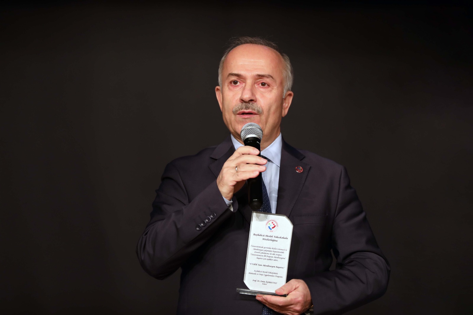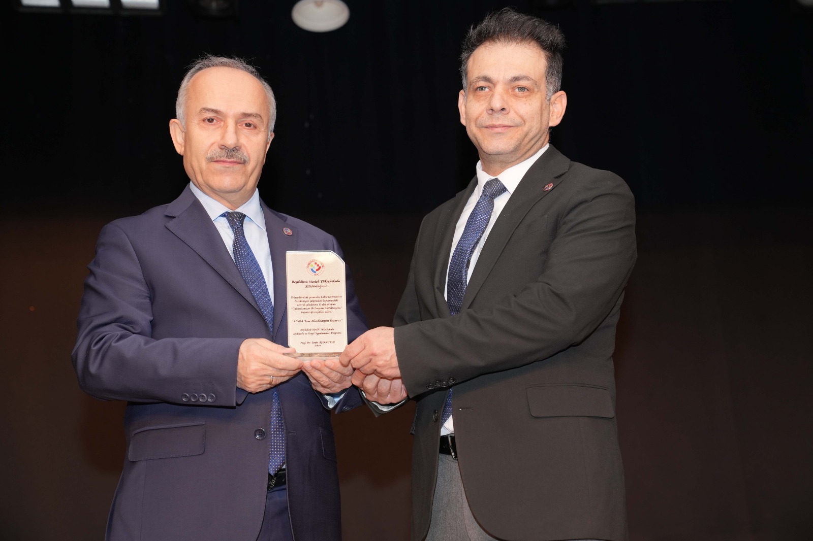 Rektör Yardımcımız Prof. Dr. Atilla Çimer’in sunumunu takiben 2025 yılı sonunda Beşikdüzü Meslek Yüksekokulu Muhasebe ve Vergi Uygulamaları programına, Çarşıbaşı Meslek Yüksekokulu Bilgisayar Teknolojisi programına ve Tonya Meslek Yüksekokulu Yaşlı Bakımı programına, MEDEK tarafından dört yıllık tam akreditasyon belgesi verilmesi dolayısıyla ödül töreni düzenlendi. Ödül töreninde, performans değerlendirme süreçlerini izlemek için düzenlenen toplantının önemine işaret eden Rektörümüz Prof. Dr. Emin Âşıkkutlu ise “Toplantımızın hayırlı olmasını temenni ediyor, Üniversitemizin akreditasyon süreçlerine ilk öncülük yapan üç meslek yüksekokulumuzu tebrik ediyorum. Diğer birimlerimize de örnek olmalarını temenni ediyorum. Yapacağımız işler, yaptıklarımızdan çok daha fazla... Bir an önce bu sürece bütün gücümüzle, samimiyetimizle sarılarak destek vermemiz gerekiyor” dedi. YÖKAK’ın açık yönergeleriyle 2027 yılında kurumsal akreditasyon süreçlerinin tamamlanması gerektiğini hatırlatan Rektörümüz, “Başlanmış yıl bitmiş demektir. Fazla zamanımız kalmadı. Bir an önce bu süreçlere adapte olup birimlerimizle gerekli çalışmalarımızı tamamlamamız gerekiyor. Bizim burada yaptığımız, birimlerin koordinasyonudur. Birimler de kendi içlerinde bu süreci sürdürmeli. Türkiye’de 208 üniversite bu sürece giriyor. Sınırlı sayıda akreditasyon dernekleri bulunması doğal olarak bir sıra oluşturacaktır. Akreditasyon sırasında beklemek istemiyoruz; bir taraftan irademizi ortaya koyar diğer taraftan da eksikliklerimizi giderirsek başarılı oluruz” şeklinde konuştu.