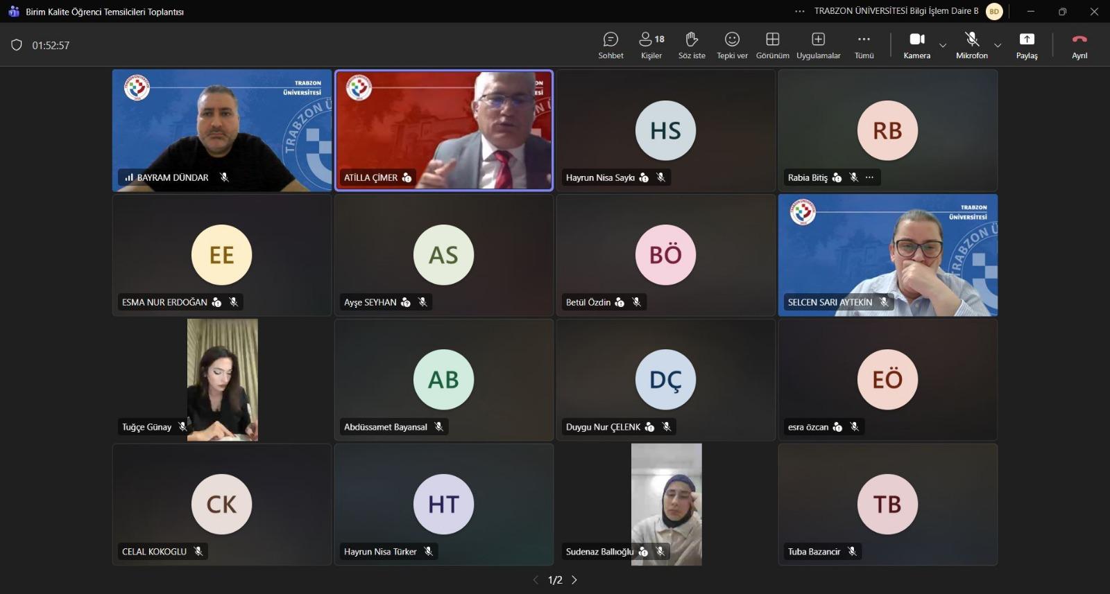 11 Mart 2026 Çarşamba günü saat 21:00’da Microsoft Teams üzerinden kalite süreçlerinden sorumlu Rektör Yardımcısı Prof. Dr. Atilla Çimer başkanlığında çevrimiçi olarak gerçekleştirilen Birim Kalite Öğrenci Temsilcileri Toplantısına Kalite Koordinatörü Doç. Dr. Selcen Sarı Aytekin, Kalite Koordinatör Yardımcısı Öğr. Gör. Bayram Dündar ve Kalite Koordinatörlüğü Personeli Öğr. Gör. Tuba Bazancir katıldı. Ayrıca Hukuk Fakültesi, Fatih Eğitim Fakültesi, İlahiyat Fakültesi, İletişim Fakültesi, İnsan ve Toplum Bilimleri Fakültesi, Spor Bilimleri Fakültesi, Beşikdüzü Meslek Yüksekokulu, Şalpazarı Meslek Yüksekokulu, Turizm ve Otelcilik Meslek Yüksekokulu, Tonya Meslek Yüksekokulu, Vakfıkebir Meslek Yüksekokulu, Uygulamalı Bilimler Yüksekokulu, Devlet Konservatuvarı ve Lisansüstü Eğitim Enstitüsü birimlerinden öğrenci temsilcileri katıldı. Toplantıda birim kalite öğrenci temsilcilerinin, birimlerinde yürütülen kalite ve akreditasyon çalışmaları hakkında görüşleri alındı. Yaklaşık iki saat süren toplantı katılımcıların soru-cevapları ile sona erdi.
