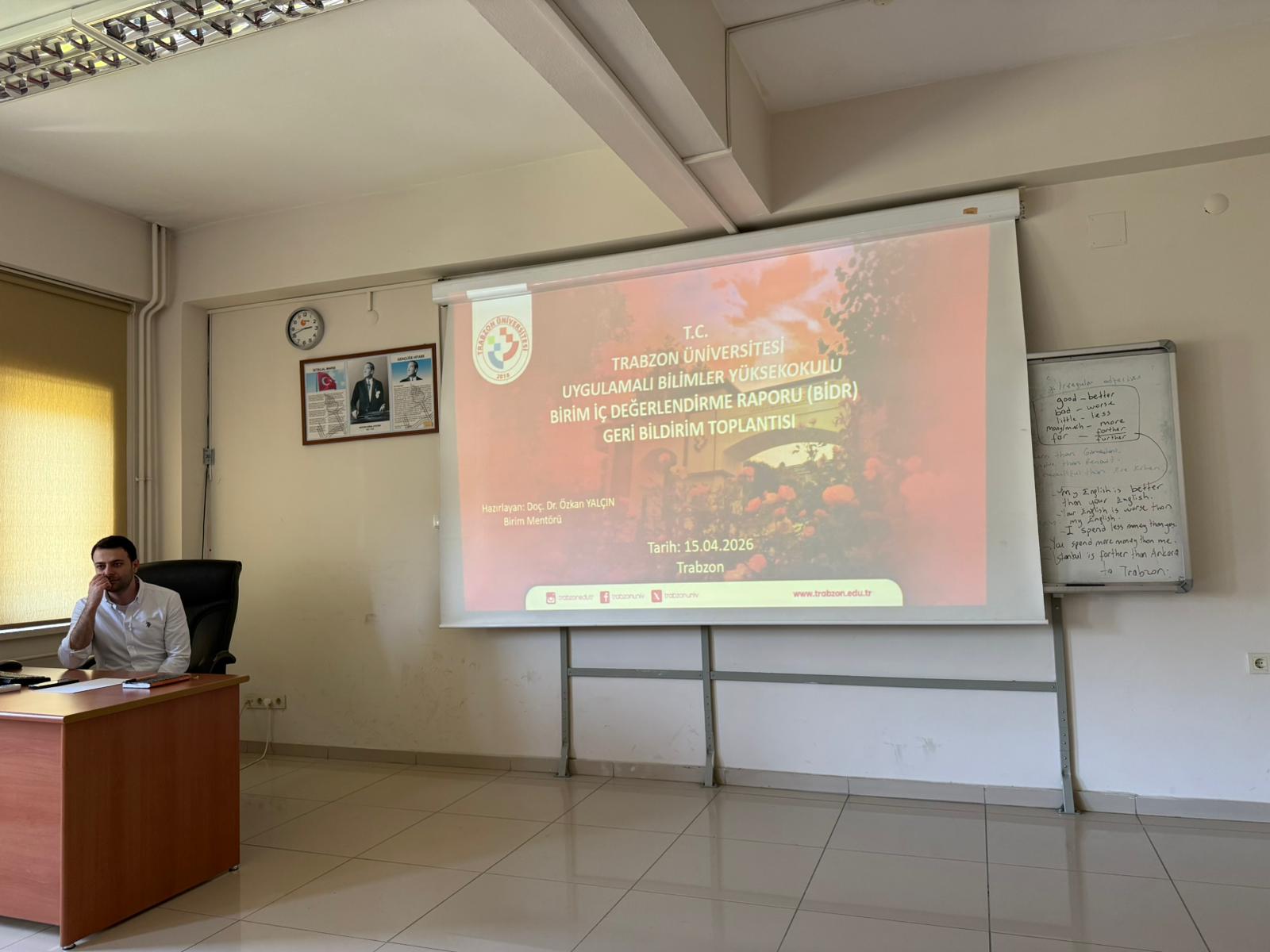 Bu kapsamda, 15 Nisan 2026 saat 13.00’da Üniversitemizde kalite süreçlerinden sorumlu Rektör Yardımcısı Prof. Dr. Atilla Çimer başkanlığında, Uygulamalı Bilimler Yüksekokulu birim mentörü Doç. Dr. Özkan Yalçın, Kalite Koordinatörlüğü personeli Öğr. Gör. Tuba Bazancir ve Öğr. Gör. Funda Serdar, Yüksekokul Müdürü Prof. Dr. Salih Akyıldız, birim kalite komisyonu üyeleri, akademik ve idari personeli Uygulamalı Bilimler Yüksekokulu’nun 2025 yılı Birim İç Değerlendirme Raporunu (BİDR) değerlendirmek üzere düzenlenen toplantıda bir araya geldi. Toplantıda, birime ait değerlendirme sunumu Doç. Dr. Özkan Yalçın gerçekleştirdi.